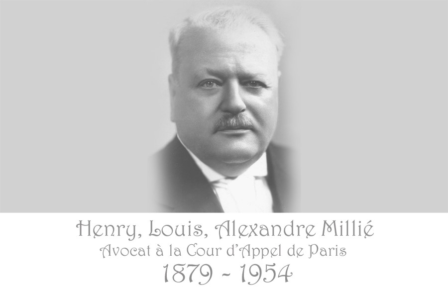 Travailleur infatigable de jour et même de nuit. Son bâtonnier peut en donner le témoignage, et rappeler cette soirée mémorable où telles dispositions furent prises pour éviter, à l’aube du lendemain, la prise de corps de quelques confrères, impliqués dans des malentendus ou compromis par des imprudences. Henry Millié sut prouver ce jour là qu’il n’était pas seulement habile, mais courageux. Même dans la fierté et l’allégresse d’avoir été porté aux honneurs, Henry Millié était demeuré semblable à lui-même. Dans le « civil », on le reconnaissait à cette courtoisie invariable, d’une sobre élégance, qui l’avait revêtu naguère d’une jaquette, puis d’un veston noir sur le pantalon rayé gris... Et sur tout son éternelle cravate de piqué blanc ! Détail vestimentaire qui devait entrer dans l’histoire lorsqu’à l’imitation du patron, l’un de ses jeunes collaborateurs, du nom de Pierre Laval, décida un jour d’adopter, pour ne jamais s’en séparer lui non plus, cette fameuse cravate blanche! Chez Henry Millié, même âme et même cœur aussi, tout au long d’une existence harmonieuse, sans aspérités. Un bel équilibre dans la pensée et dans le propos, et une parfaite bienveillance. Jamais de calomnies, jamais de médisance. S’il savait décrire les ridicules d’autrui, c’était pour en faire rire sans méchanceté, ni trivialité, et le sel de son ironie n’a jamais eu d’amertume. C’est qu’il était, au vrai, foncièrement loyal et bon. Est-ce assez de dire qu’il était bon ? Le mot « charitable », ici, vient aux lèvres mais nous avons reçu consigne de silence. Le destin lui a dispensé beaucoup de joies, qu’il a goûtées comme il devait, parce qu’elles étaient simples et probes. Une grande douleur aussi l’a frappé en 1929, son fils lui a été ravi, qui était son orgueil, et qu’il avait conduit au stage. L’épreuve a trahi ses espérances ; elle a pu faire vaciller sa foi, mais elle n’a pas réussi à tarir en lui les sources de la générosité. Alors il s’est repris, et il a continué de vivre pour les autres plus que pour lui-même. Jusqu’au jour où il a fait à son tour l’apprentissage de la souffrance : préparatoire à l’oubli parmi les hommes, mais à la présence éternelle devant un autre Dieu, cet inconnu... Sa mort fut discrète. Il y a quelques semaines, le lendemain du jour de Noël Comme il l’avait voulu, ses obsèques furent célébrées parmi ses intimes, car il avait proscrit l’abondance des afflictions officielles. La tristesse de l’avoir perdu devrait être réservée à ceux-là, seuls, qui l’ont vraiment aimé. Il fut, vers ce temps promu officier de la Légion d’honneur.